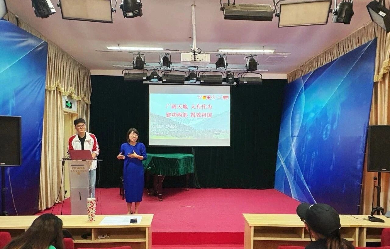 为积极响应国家号召,鼓励青年学子投身西部建设,弘扬志愿服务精神,学院于4月18日上午在鸣乐厅举办了“泛舟沧海 立马昆仑”西部计划宣讲会。院团委书记(学工办主任)周虹先老师、辅导员步永博老师,学院23届毕业生参加了此次宣讲会,西部计划志愿者侯磊同学为在校生宣讲大学生志愿服务西部计划的相关政策,吸引了众多学生到场聆听。