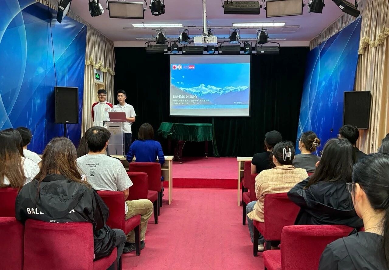 宣讲会上,侯磊同学以“泛舟沧海 立马昆仑”为主题,结合自身经历,生动讲述了他在新疆生产建设兵团志愿服 务的点滴故事。他提到,西部计划不仅是一次志愿服务的机会,更是一次深刻的人生历练。在支教期间,他克服了种种困难,用自己的专业知识和热情为当地文化事业贡献了自己的青春力量。