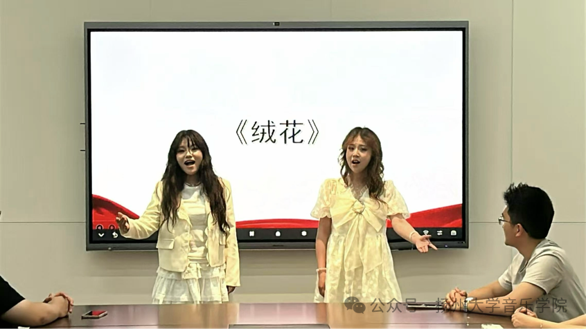 随后播放的由陈云同学主讲的音乐“微”党课《一首校歌,百年校史》,通过熟悉的旋律,带领同学们回顾了学校百年来与国家同呼吸、与时代共奋进的动人故事。最后,音乐学院单孜芊和孙钰瑶同学深情演绎的《绒花》,以柔美旋律歌颂了平凡中的伟大与坚韧,展现了新时代青年的精神风貌。