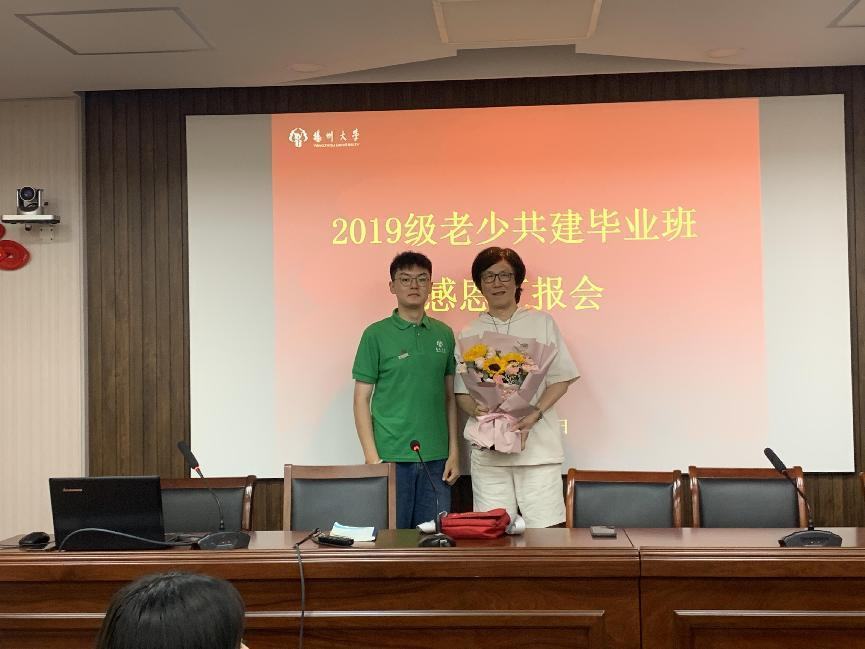 首先,分别由张一敏、侯磊两位同学作为两个班级的学生代表对这四年来结对共建后的学生培养、学生学习情况、班级班风等各个方面所取得的出色成绩进行汇报工作。两个班级着重汇报了共建班级的学业和就业相关方面情况,同时也反思不足之处,并感谢两位结对共建老师一直以来的帮助与指导。