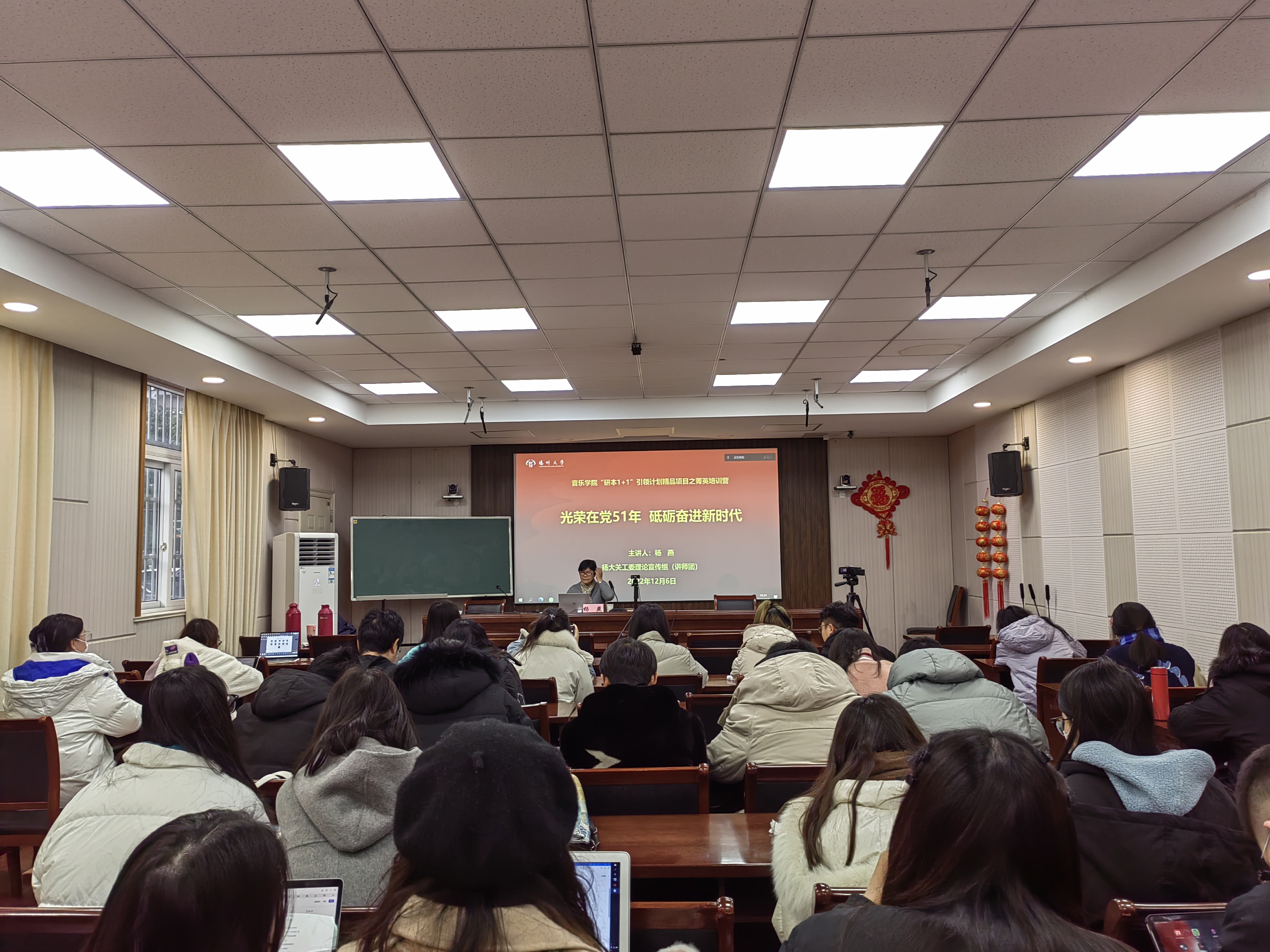 12月6日,音乐学院邀请校关工委杨燕老师在美学堂开展“光荣在党51年 砥砺奋进新时代”专题讲座。