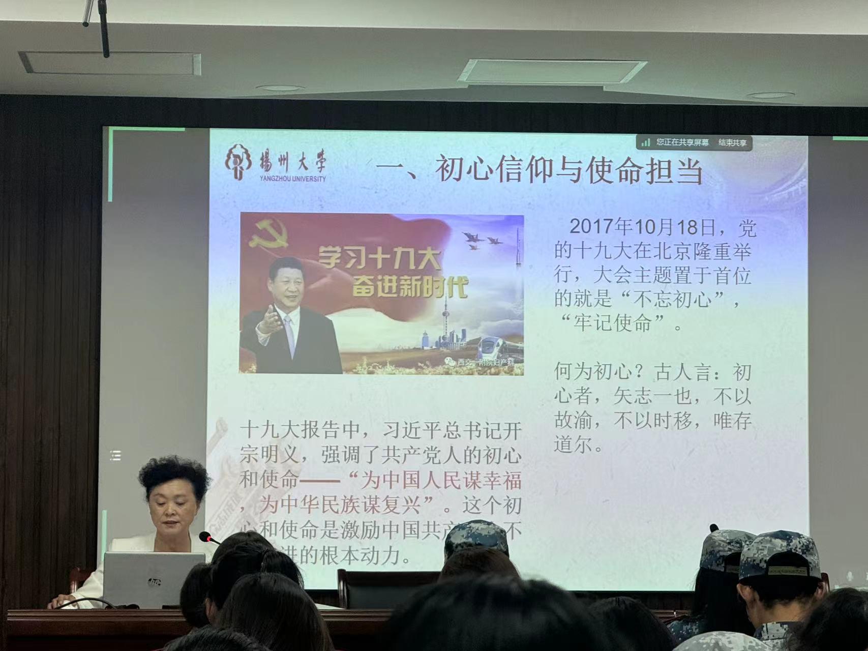 为深入贯彻习总书记对青年工作的论述和培育新一代入党入团积极分子,我院于10月12日在美学堂开展了“青春跟党走 建功新时代“的青马工程培训会,讲座特邀扬州大学关工委姚蔚老师主讲,院团委书记、学工办主任周虹先老师主持,大一新生、各班级学生骨干及入团、入党积极分子参会。
