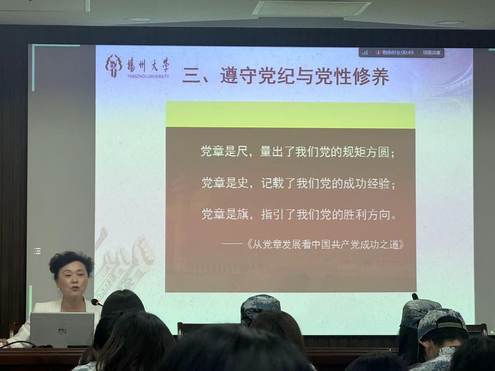 姚蔚老师告诫现场要求入党的积极分子要遵守党纪,以党员的标准严格要求自己,不但组织上要求入党,更重要思想上入党,提高党纪意识和党性修养。作为入团、入党积极分子要自觉增强意识,做到言行一致,提高自我反思和自我监督能力,及时发现和纠正自身存在的问题。同时在面对问题和挑战时要具备在是非面前的辨别能力、在诱惑面前的自控能力和警示面前的悔过能力等三种能力,以助力自身茁壮成长。