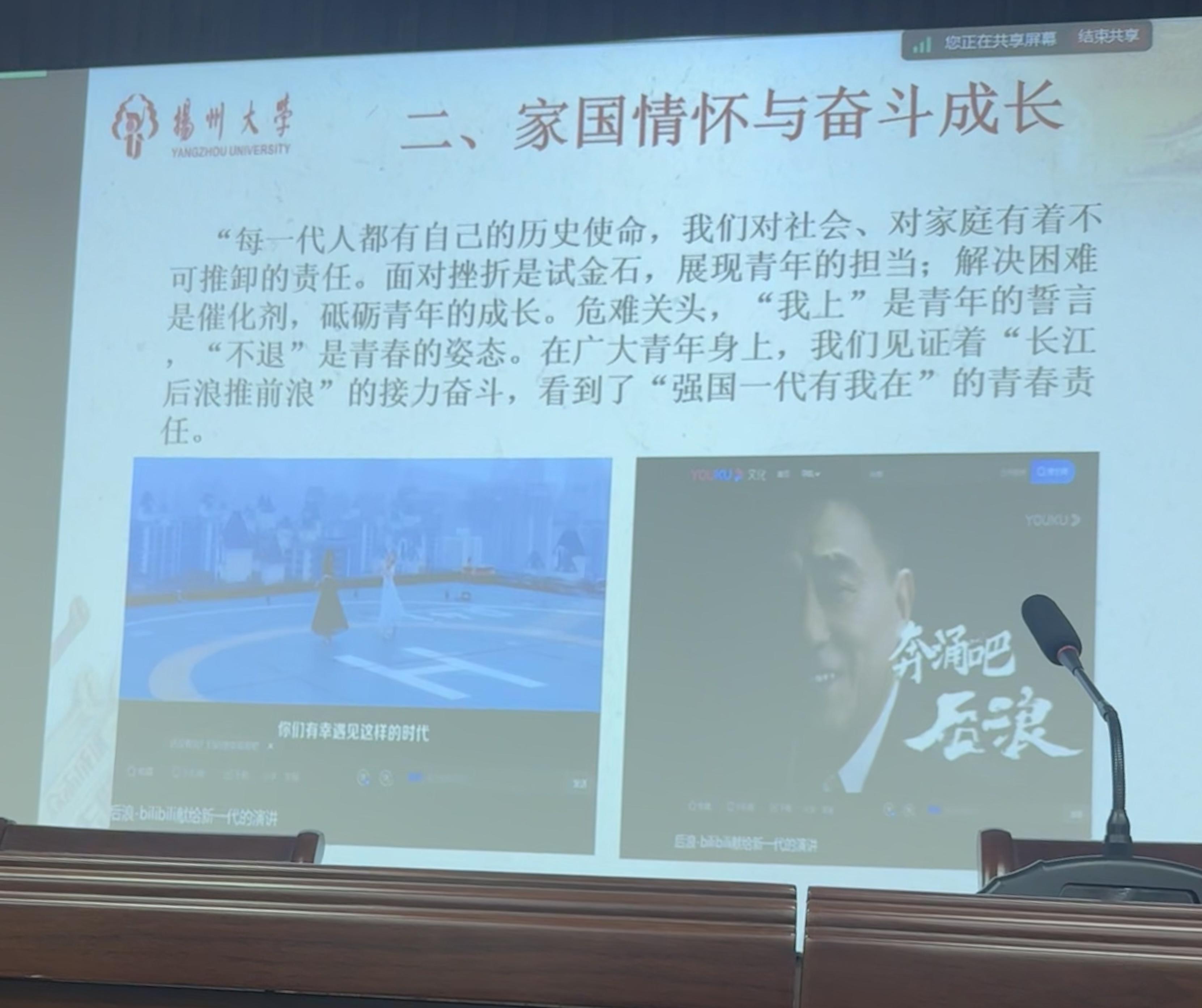 思政铸魂育新人,青春筑梦启新程。为提高同学们的思想素质和爱国情怀,姚蔚老师通过强调家国情怀对于个人成长和国家发展的重要意义,着重指出新时代中国青年是中华民族伟大复兴的希望。奋斗是实现个人价值和国家繁荣的必由之路,只有通过不断努力奋斗,才能在学习和生活中取得进步。作为艺术专业大学生,要牢固树立艺术服务于人民的思想,争做复兴栋梁,强国先锋。