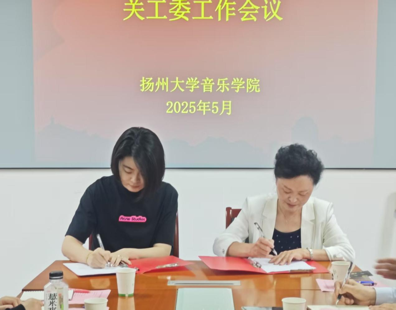 会议伊始,音乐2401、音表2401班班主任分别从学风建设、思想引领、困难生帮扶、实践育人等方面对班级情况进行了介绍,既梳理了班级的突出表现,也客观指出了需重点关注的发展短板。为进一步加强音乐2401和音表2401新生班级的建设,充分发挥老同志的政治优势、经验优势和专业优势,学院聘任老同志崔茵老师、姚蔚老师为音乐2401和音表2401班的兼职班主任并举行了结对共建仪式。