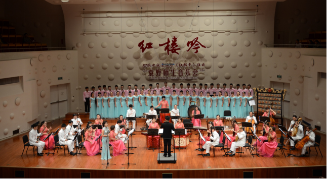 2015年10月,学院袁野老师携手学生吴小波、纪大勇、汤淼担纲主唱,扬州市歌舞剧院副院长秦如峰担任指挥,作曲家靳淑海配器,音乐学院合唱班全体同学担任伴唱的“红楼吟”袁野师生音乐会在扬州市音乐厅举行。