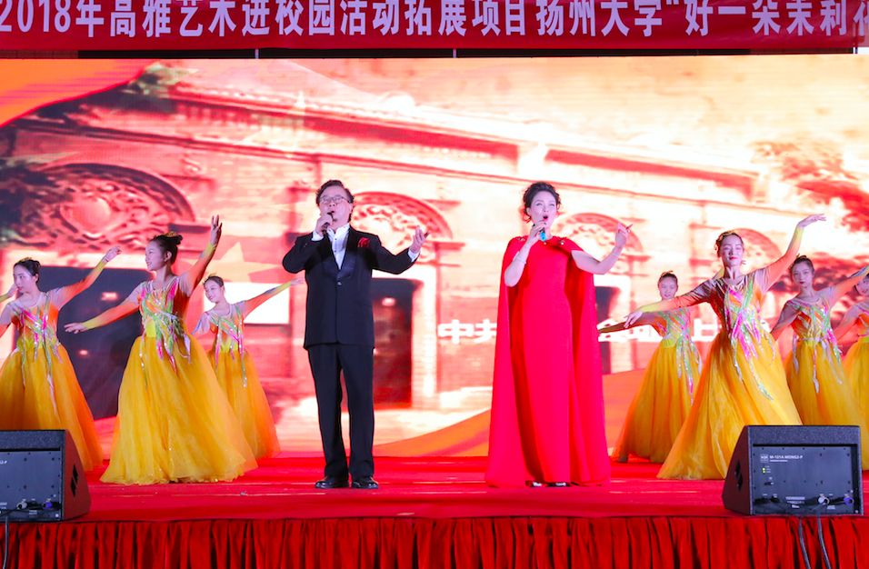 本次高雅艺术进校园活动《好一朵茉莉花》,也是在2017年孔子学院文化巡演”项目基础上,保留所有原版曲目,并针对江苏省高雅艺术进校园拓展项目进行了节目形式、人数、内容的调整与加工,将晚会精心打造成集歌、舞、乐为一体的综合性文艺晚会。经过参演师生团队的共同努力,为江苏旅游职业学院的师生呈现了一场充满中国传统文化与地方特色的高雅艺术盛宴。通过本次晚会,希望每一个人都将成为艺术的传播者,让高雅艺术,徜徉在校园的每一个角落,光彩夺目,熠熠生辉!