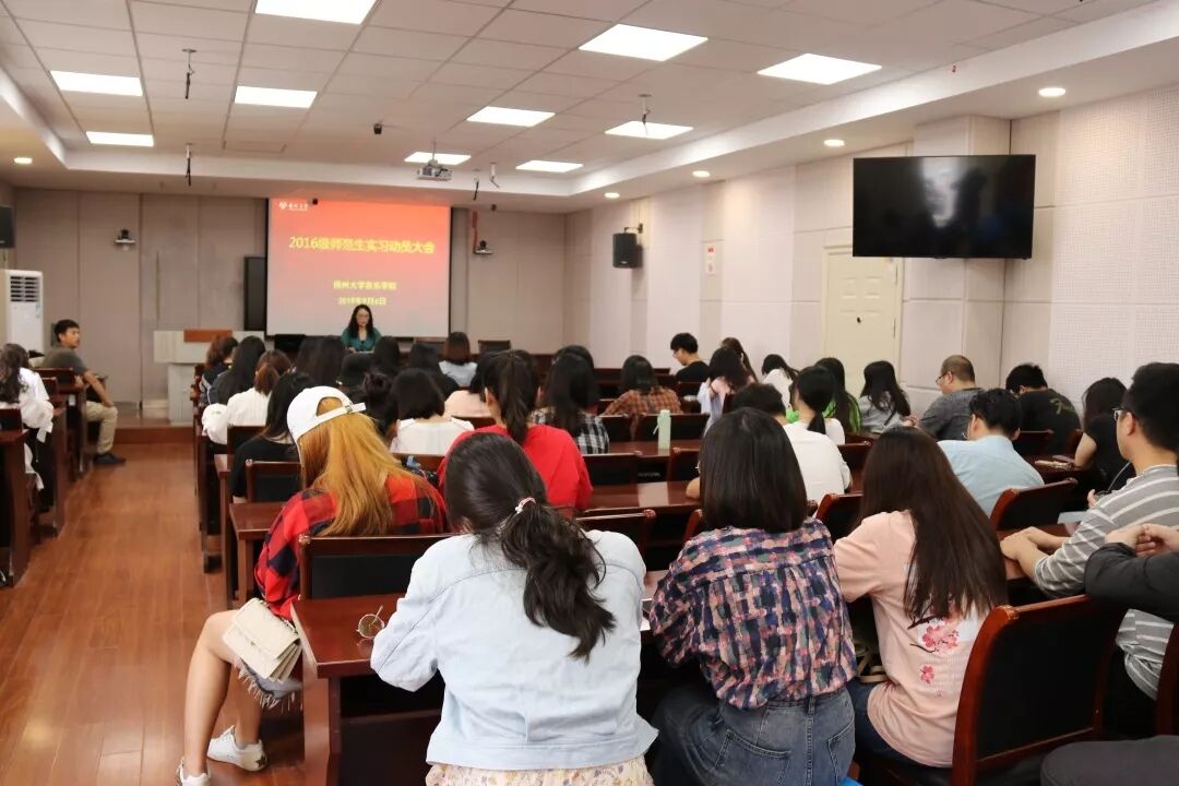 9月6日早晨,扬州大学音乐学院召开了16级同学考研动员大会暨师范生教育实习动员大会。院党委副书记吴伟、副院长姚霆、音乐教育专业主任张冰冰与院辅导员、班主任、16级全体同学参加了会议。