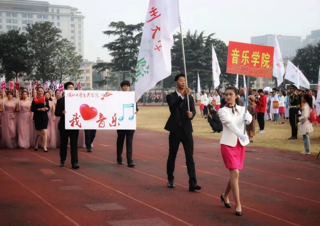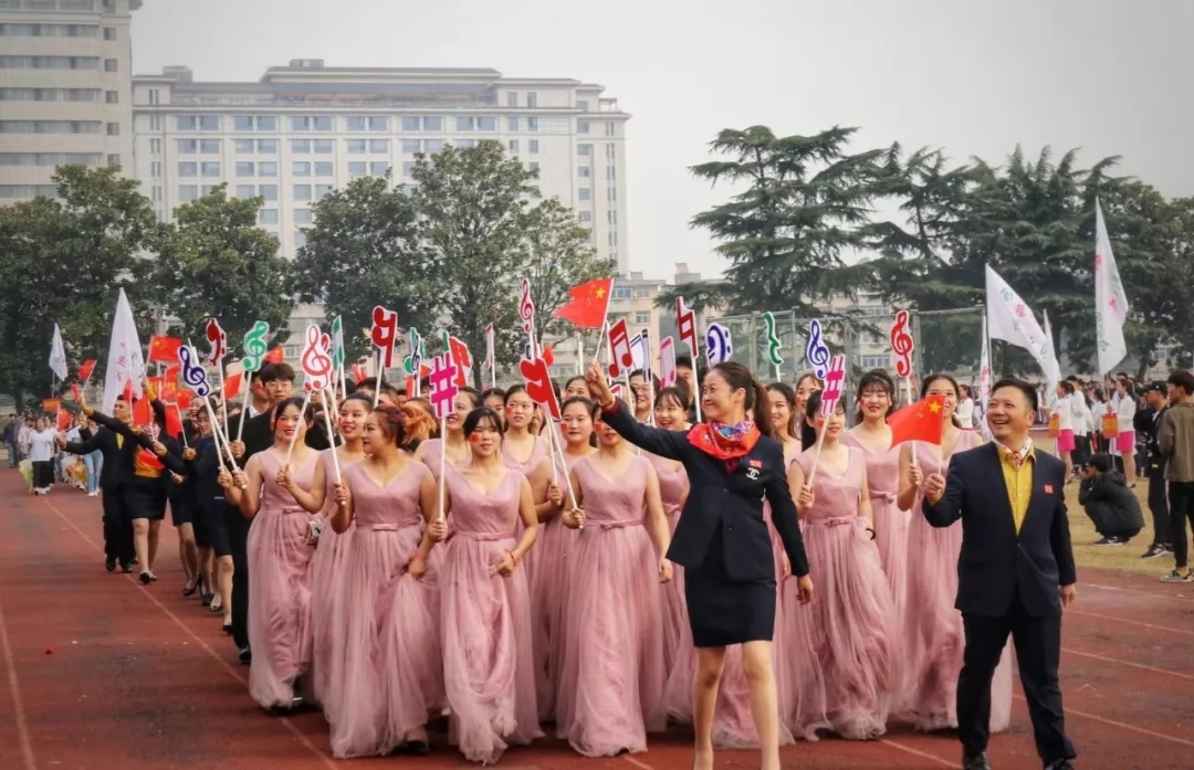 ㅤ 伴随着我院同学们的助威鼓舞,扬州大学音乐学院代表方阵正迎着朝阳向大家走来,粉红的裙摆似秋日绽放的鲜花,整齐的西服透露着艺术的高雅。在院党委书记李向阳老师和院长邵萍老师的带领下,我院方阵阔步走过主席台,洪亮的口号里传达出我院学生的蓬勃活力,也激荡着每一位参赛选手的心灵。