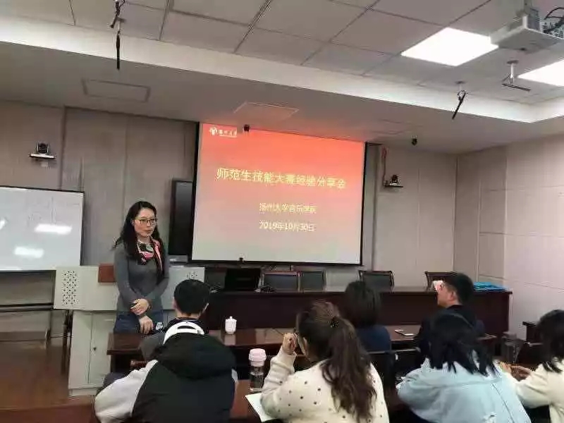 10月30日,扬州大学音乐学院教育实习总结报告会议暨师范生技能大赛经验分享会在美学堂召开,院党委副书记吴伟,副院长姚霆,音乐学专业主任张冰冰,班主任刘定,专业指导老师陈灏等出席会议,参加会议的还有音教1601,音教1701全体学生。