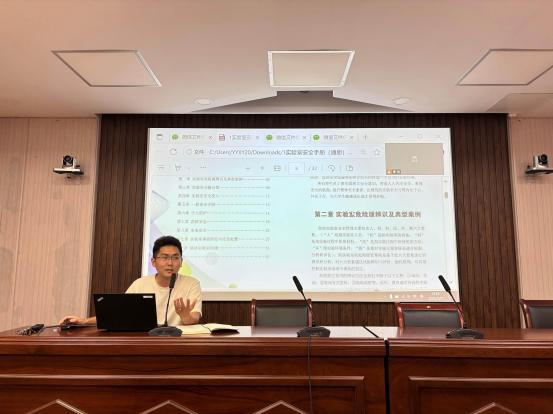 本次专题教育聚焦实验室安全核心要点,辅导员步永博老师以《安全实验手册》为蓝本展开细致解读。他从实验室安全规章制度、危险化学品规范使用、应急处置流程等关键层面切入,为新生逐一厘清实验操作的“安全红线”与“行为规范”,助力新生将“安全第一”的理念深植于心,为即将开启的科研之旅夯实安全根基