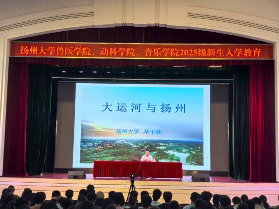 扬州文化入学教育讲座上,华干林教授以“大运河与扬州的深厚关联”为核心主题进行了深度分享。他系统阐述了大运河在塑造扬州城市格局、推动商贸繁荣及孕育文化昌盛过程中所发挥的关键作用,让新生深刻领会到扬州“因运河而诞生、借运河而兴盛”的城市根源与独特文化底蕴。