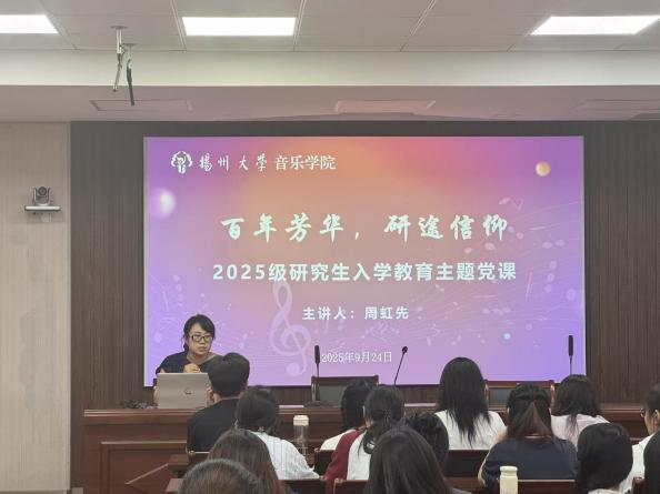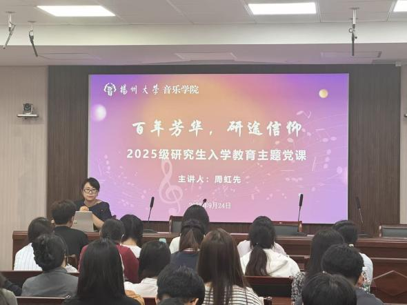“百年芳华,研途信仰”——2025级研究生新生入学教育主题党课由周虹先老师主讲,这次主题党课引领2025级研究生新生重温光辉历程,筑牢信仰之基。活动旨在激励新生将个人学术理想融入时代发展,在崭新的研究生阶段明确方向、汲取力量,砥砺前行,成为担当民族复兴大任的时代新人。