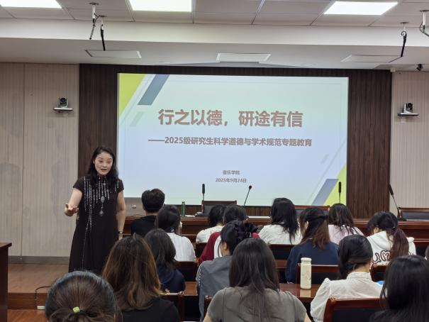 “行之以德,研途有信”——2025级研究生新生科学道德与学术规范专题教育讲座由音乐学院邵萍院长进行主讲,邵院长通过具体案例向同学们强调了学术诚信的基石作用,引导新生牢固树立科研红线意识,恪守学术规范,为未来几年的学术研究打下坚实的道德基础,守护个人与学院的学术声誉。