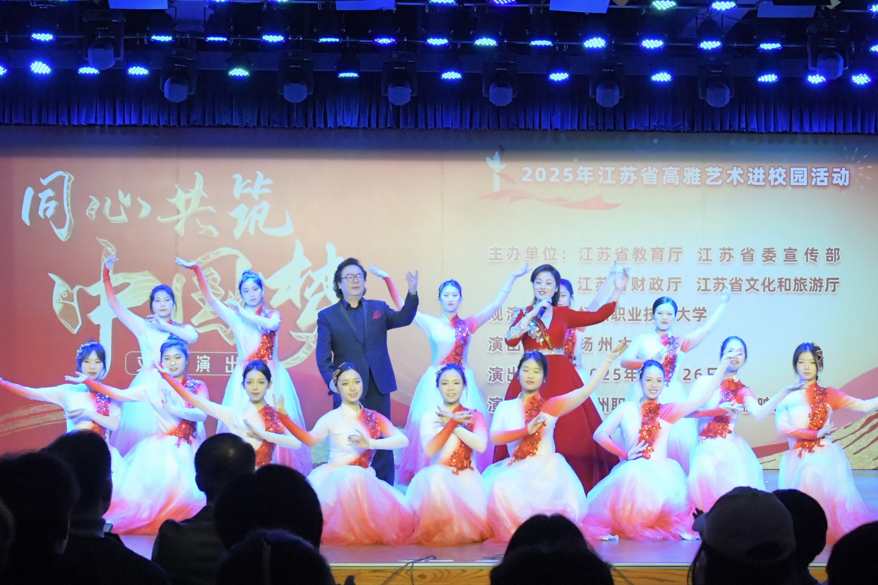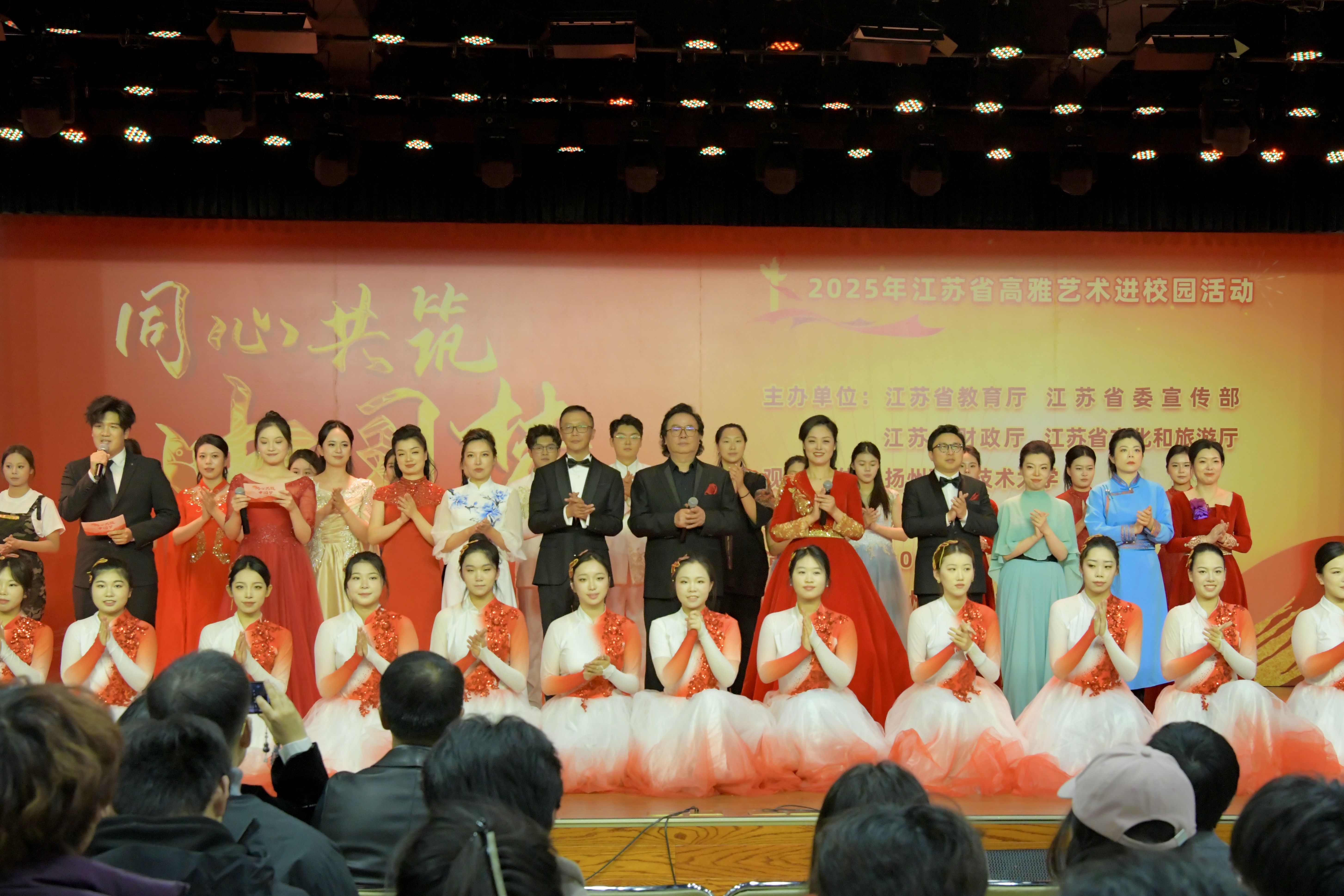2025年11月26日下午,由江苏省教育厅、省委宣传部、财政厅、文化和旅游厅共同主办的“高雅艺术进校园”活动在扬州职业技术大学隆重举行。扬州大学音乐学院(公共艺术教育中心)呈现的“同心共筑中国梦”文艺汇演,以精湛的表演和深厚的情感,为现场师生带来了一场融合民族精神与时代气息的艺术盛宴。