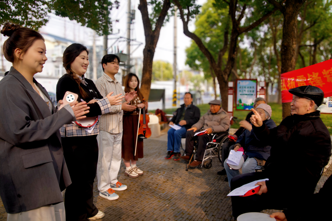 拓宽实践领域,扬音主理人们走进扬州市干休所,打造“红歌疗愈老兵”特色活动。他们化身志愿者,与老党员、离退休老干部共同唱响《没有共产党就没有新中国》《在灿烂阳光下》等时代经典。旋律传递敬意,音乐慰藉心灵,在共话初心、回忆峥嵘岁月中,红色基因跨越代际,完成了温暖的传承。