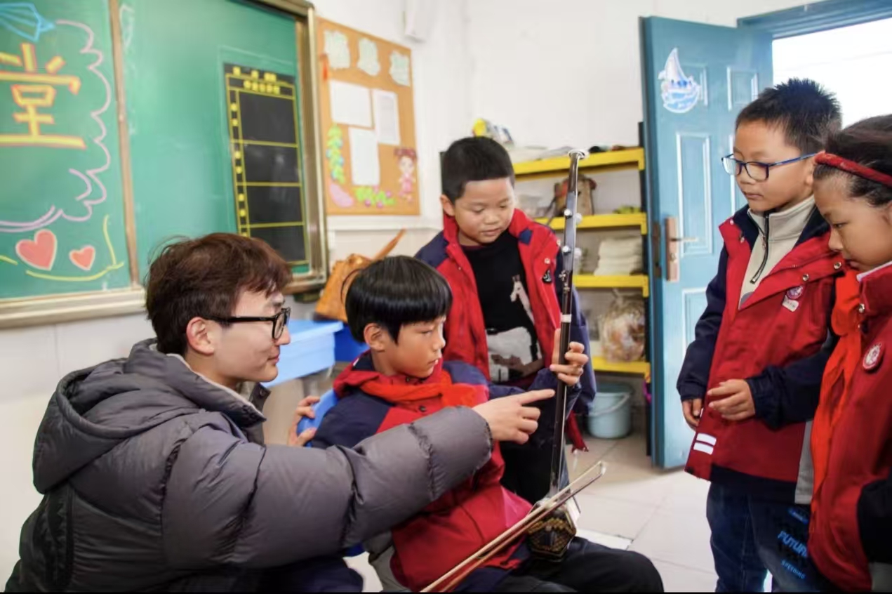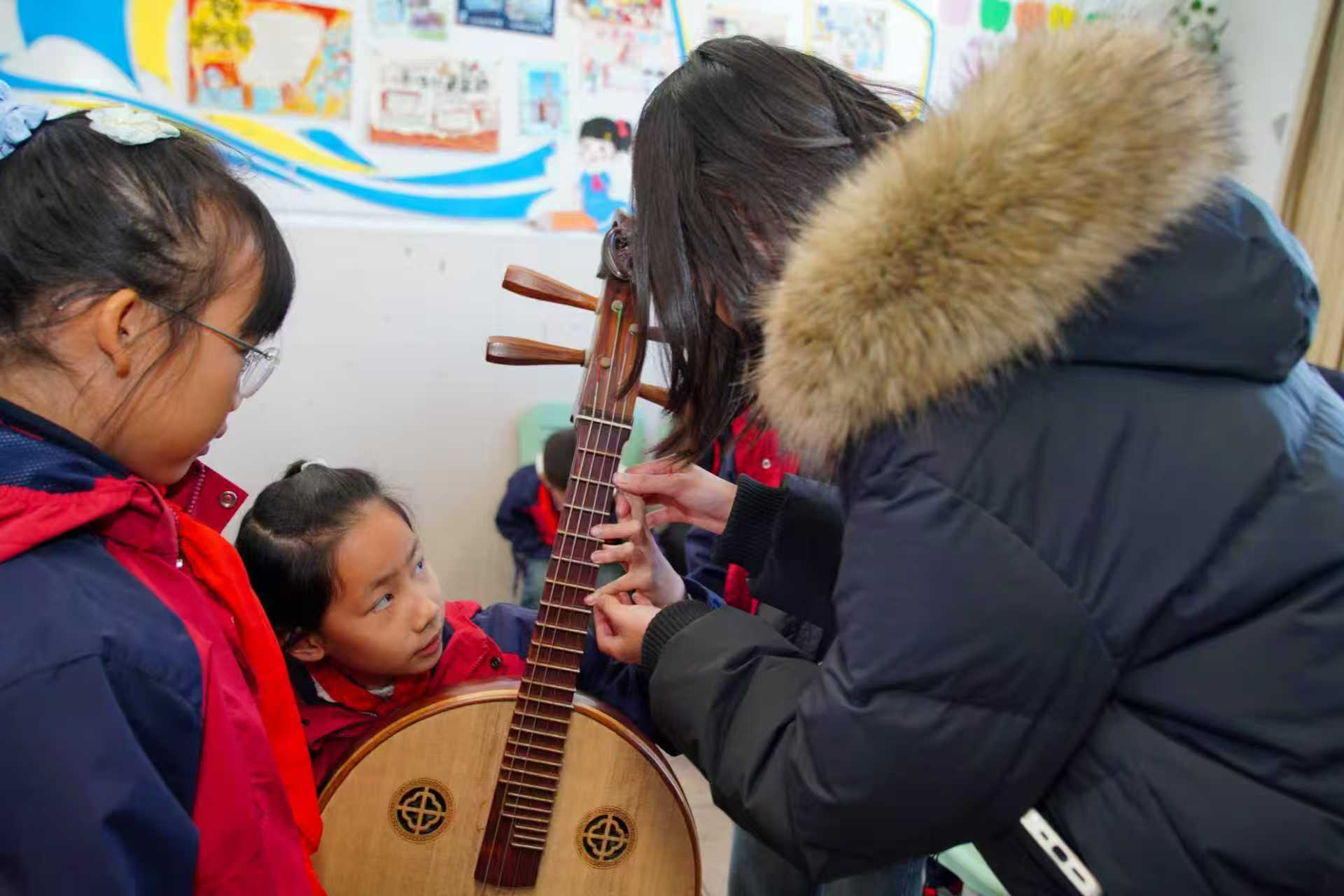 音乐竞猜环节掀起热潮!《运河明珠》《古运河之恋》等改编曲目轮番奏响,孩子们凝神聆听、踊跃抢答,在旋律中感受运河底蕴与水乡风情。表演环节高潮迭起,大学生倾情演绎《紫竹调》的清雅、《丝路驼铃》的悠远,孩子们用长笛、卡祖笛奏响童真热爱,大朋友与小朋友携手奏响文化传承乐章。随后,大学生们手持竹笛、中阮、二胡等民族乐器,一边演示技法,一边用通俗语言解读乐器背后的文化密码,孩子们纷纷围绕,稚嫩琴音与青春演绎碰撞出传承火花。