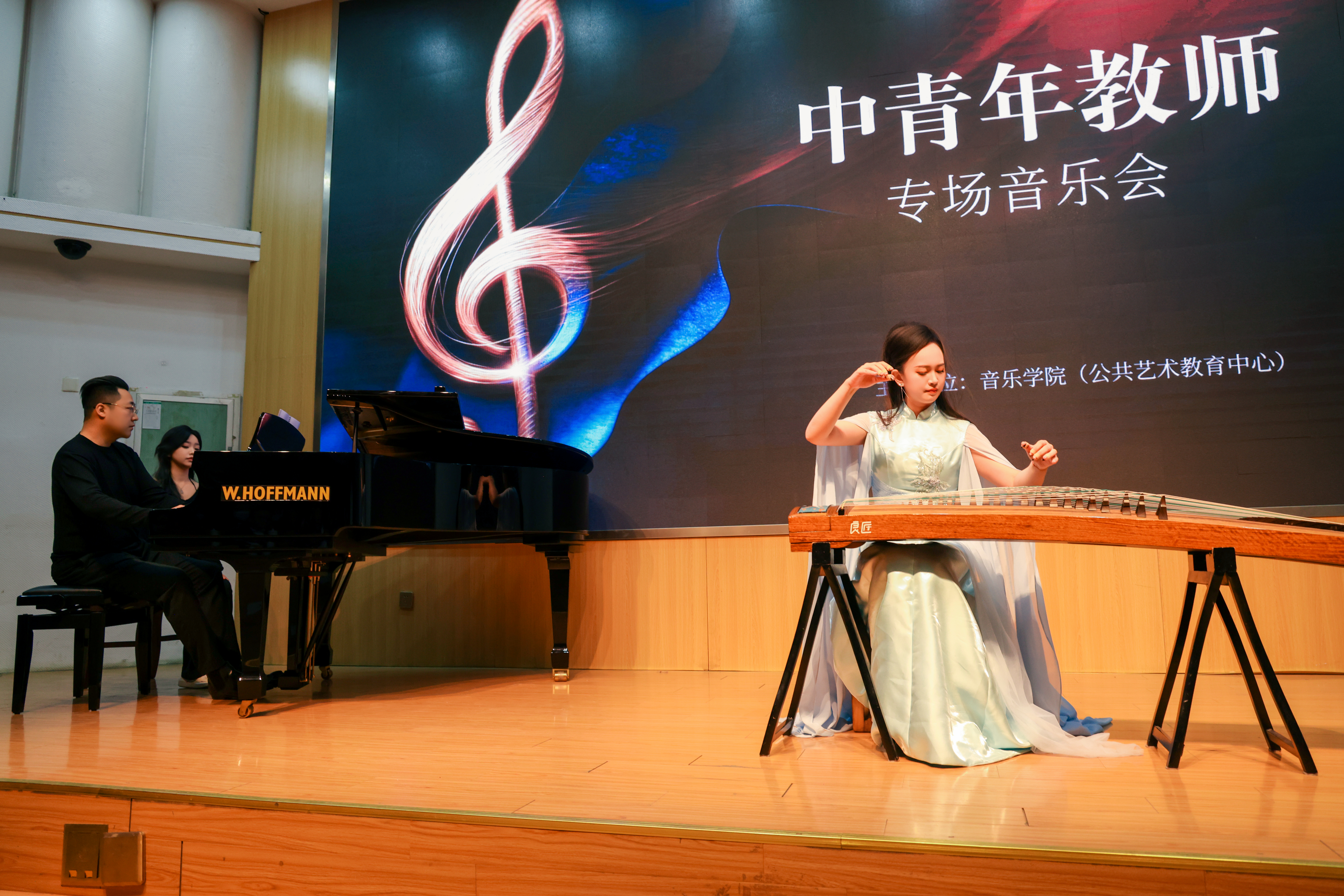 9.《山水》这首器乐作品以“山水相依”为核心主题,融合了中国传统美学中“虚实相生”的艺术理念。成莉与付龙两位老师通过乐器的对话,体现出“山环水绕”的和谐之美,让观众在旋律中感受了自然之美与艺术之妙。