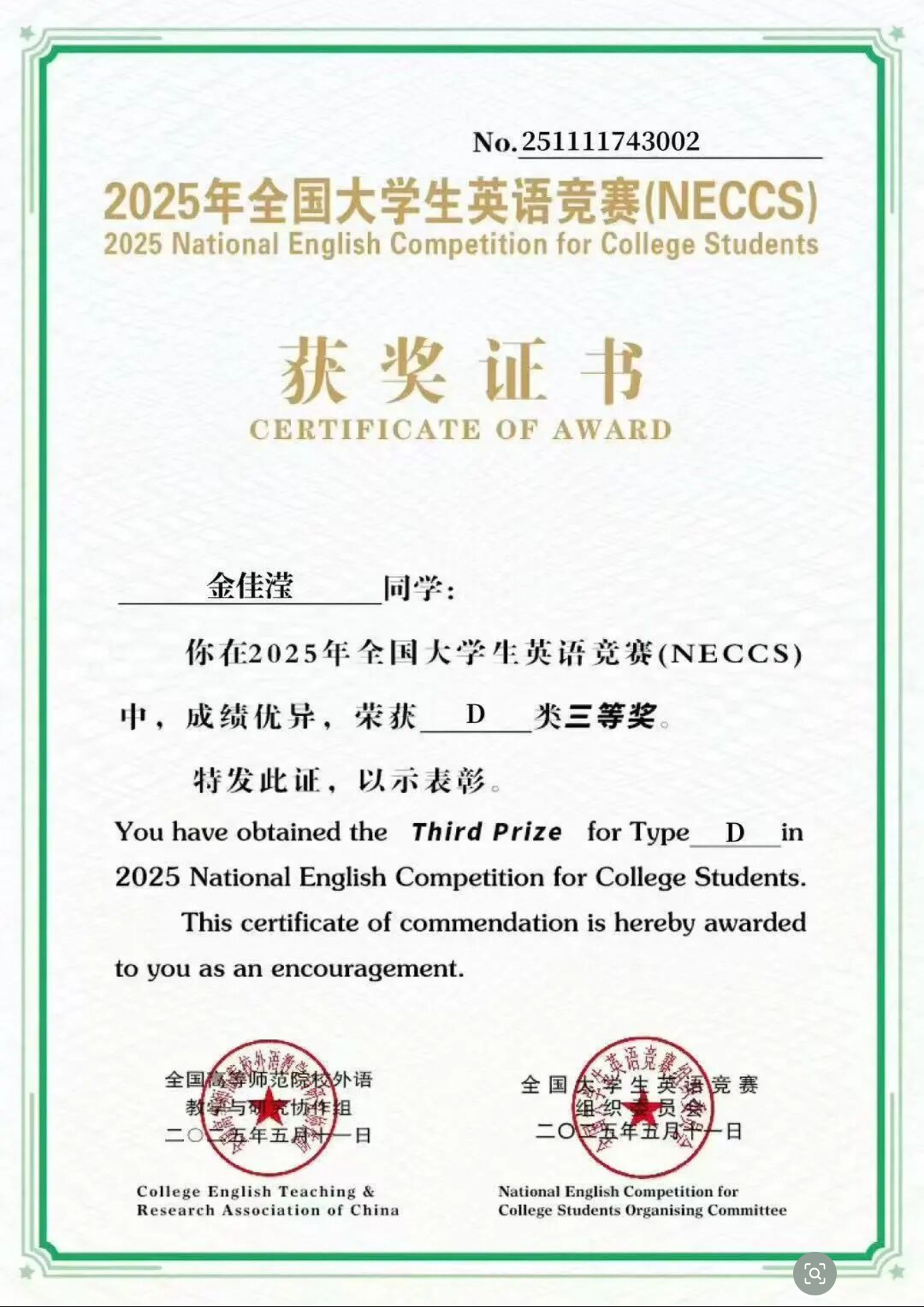 喜报 | 我院学生荣获2024-2025年本科生校长特别奖学金