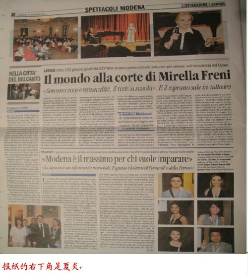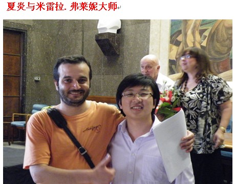 夏炎在帕尔马音乐学院学习的同时,于2011年9月9日报考了世界著名女高音歌唱家米雷拉·弗莱妮(国际歌剧“奥斯卡”终身成就奖获得者)的大师班,通过全球视听和亲自挑选有幸被大师收为门下弟子,并随大师进行为期一年的研修班课程。其间夏炎参加了在帕瓦罗蒂家乡的san carlo歌剧院举行的弗莱妮大师班公开音乐会。音乐会上,整个歌剧院座无虚席,夏炎演唱了威尔第的歌剧《龙巴地人》中的《我的欢乐》唱段,博得了全场观众长时间的热烈鼓掌,也受到弗莱妮大师的好评。(意大利摩德纳电视台和报纸进行了专题报道,夏炎接受了电视台采访。)