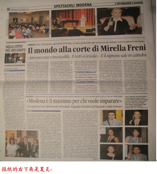 2012年3月25晚,在意大利深造的扬大学子夏炎, 在意大利第九届布雷西亚国际声乐比赛中,经过初赛、复赛、决赛,从86名来自世界各国的参赛选手中脱颖而出,喜获第三名。这是夏炎首次参加国际声乐比赛,决赛时,夏炎以歌剧《爱的甘醇》中的一首经典的男高音咏叹调《偷洒一滴泪》获得了6位评委的一致好评,荣获“第九届布雷西亚国际声乐比赛第三名”及“第九届布雷西亚bibiena歌剧院特别奖”。