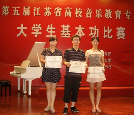第五届江苏省高校音乐教育专业大学生基本功比赛已经落下了帷幕,全省19所高校的五十余名选手参加了本次比赛。艺术学院师生在此次比赛中凭借扎实的专业技能,良好的临场表现,取得了可喜的成绩。扬州大学荣获此次比赛本科组的团体三等奖。艺术学院朱银华、杨华、苏囡老师获得“优秀指导教师奖”。艺术学院学生毛玉娇获本科组自弹自唱单项奖第一名,沈如松获得本科组钢琴弹奏单项奖第五名。此外,毛玉娇、邵沁、沈如松还各自取得了本科组全能三等奖的好成绩!