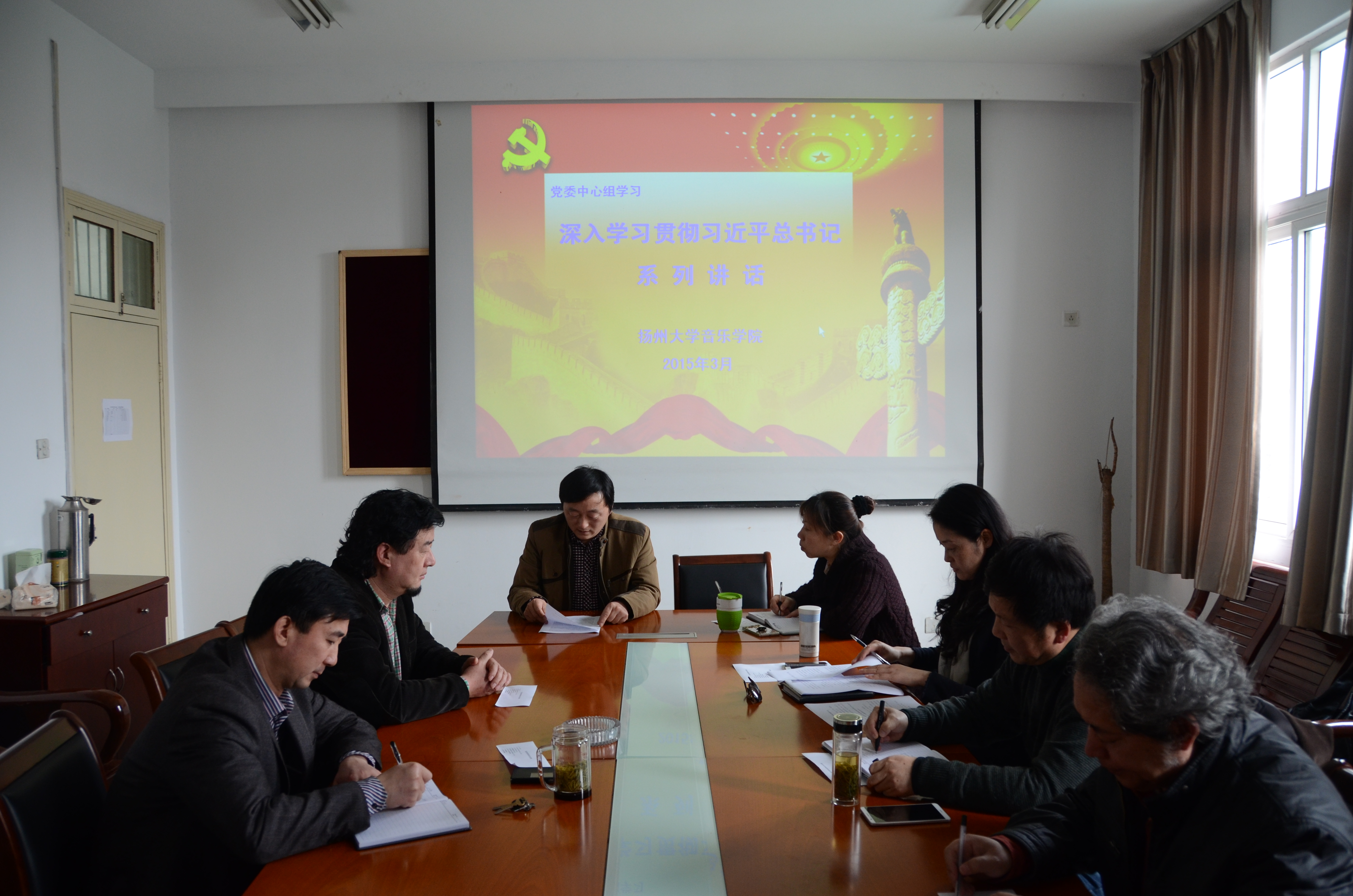 2015年3月31日,我院在会议室召开中心组学习活动,深入学习贯彻习近平总书记系列讲话精神,领会“四个全面”的内容和重大意义。