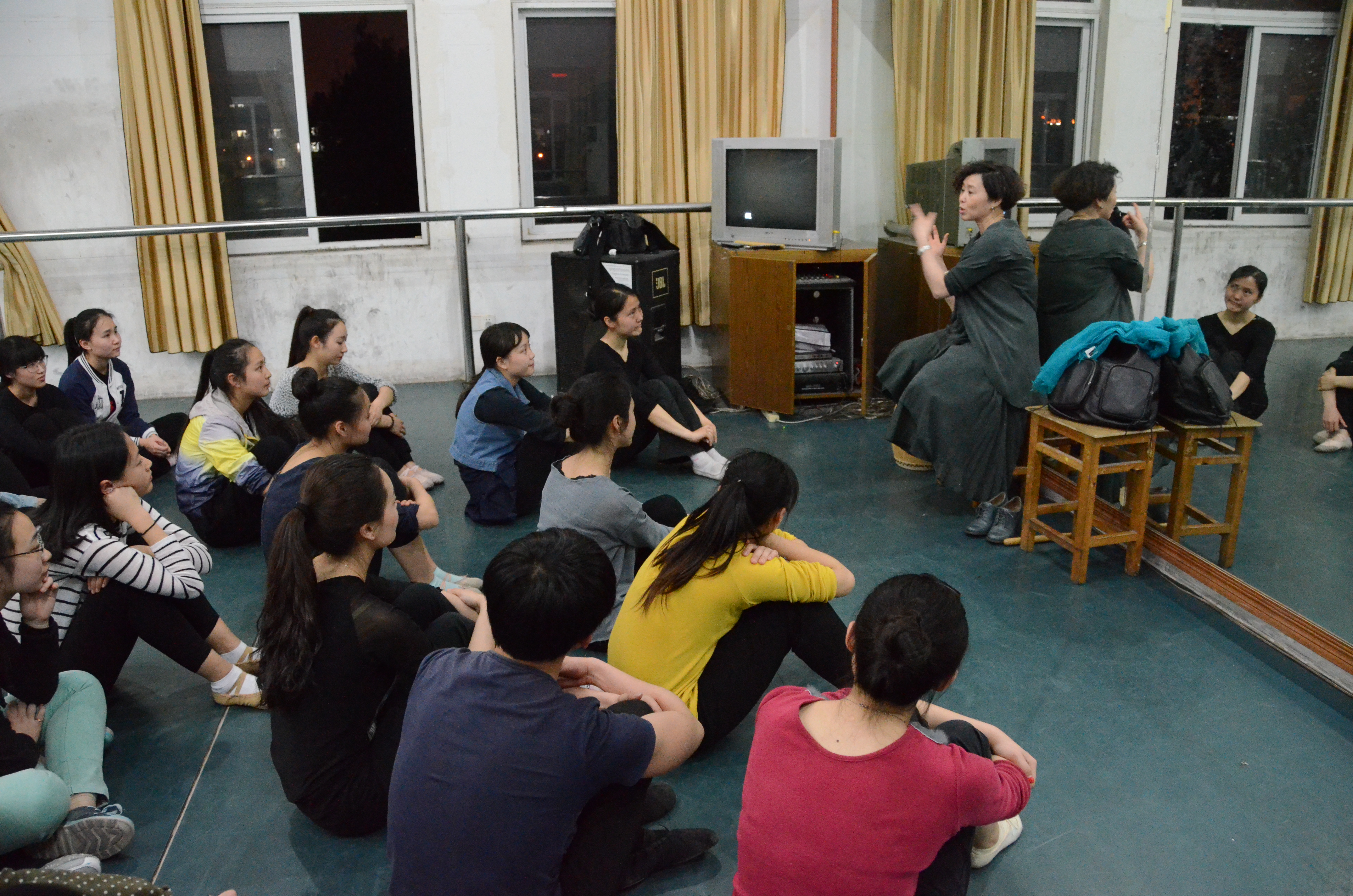 2015年4月25日,国家一级编导、北京舞蹈学院万素教授应邀到我院讲学,她为师生上了一堂题为“走进现代舞”的教学实践课。我院曹功林副院长、邵萍副院长和部分师生参加了该项教研活动。