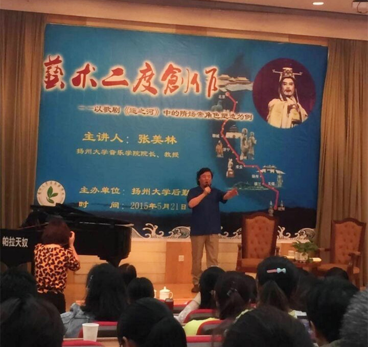 共建仪式结束后,院长张美林教授与后勤处同志分享了题为“艺术二度创作——以歌剧《运之河》中的隋炀帝角色塑造为例”的艺术讲座。
