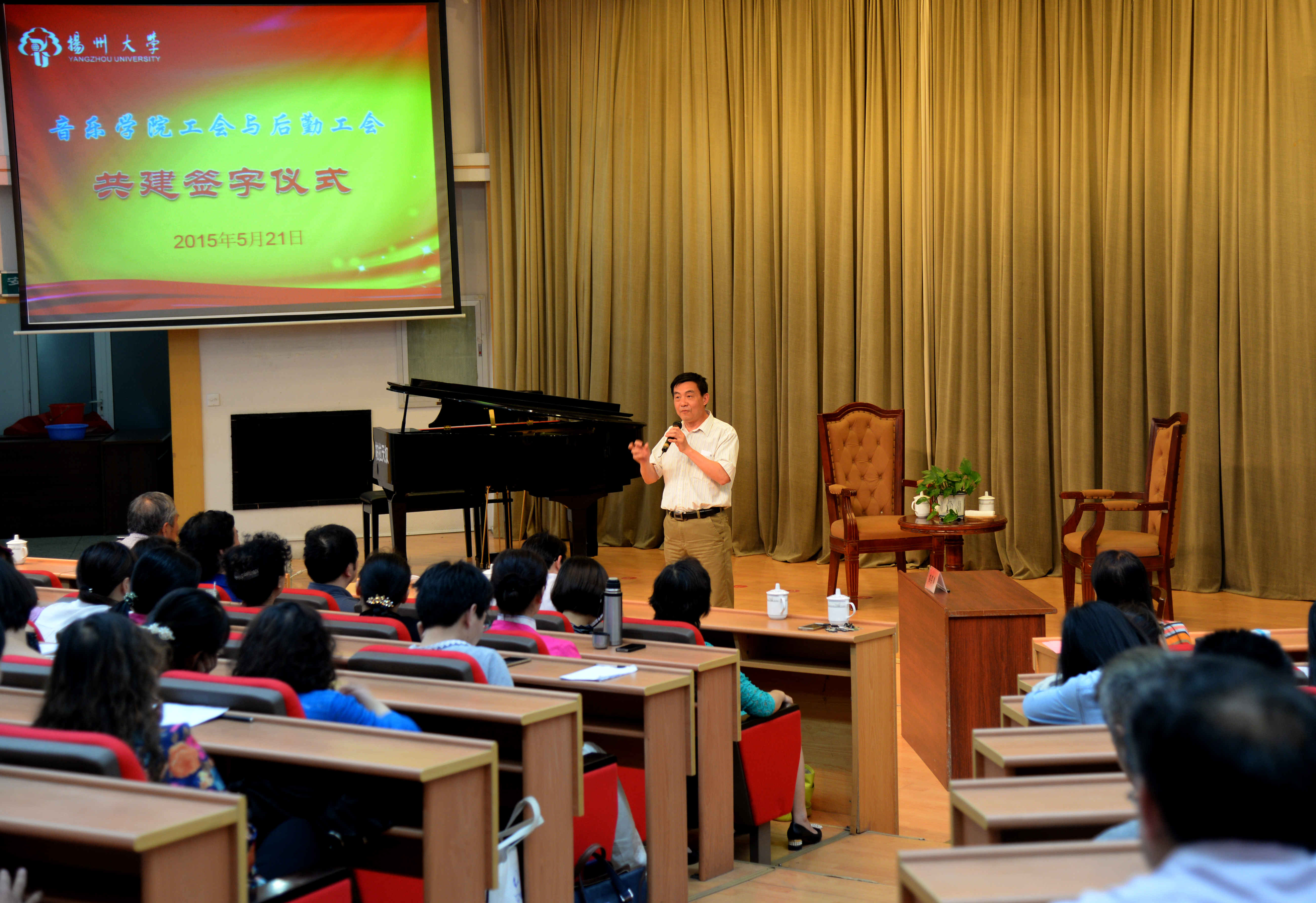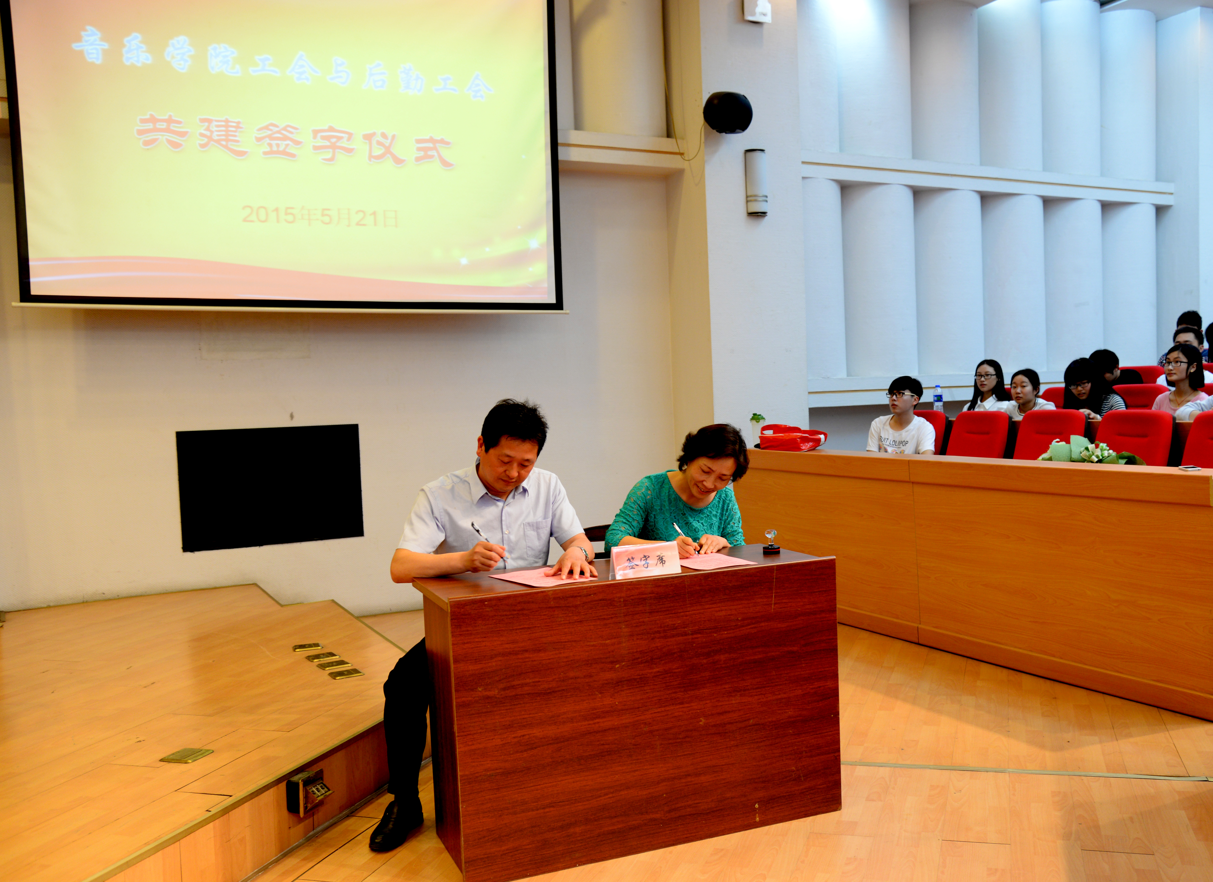 5月21日下午,我院工会和后勤工会在逸夫图书馆报告厅签订了音乐学院工会和后勤保障处工会共建协议书。经双方单位协商,确定了两年的共建方案。