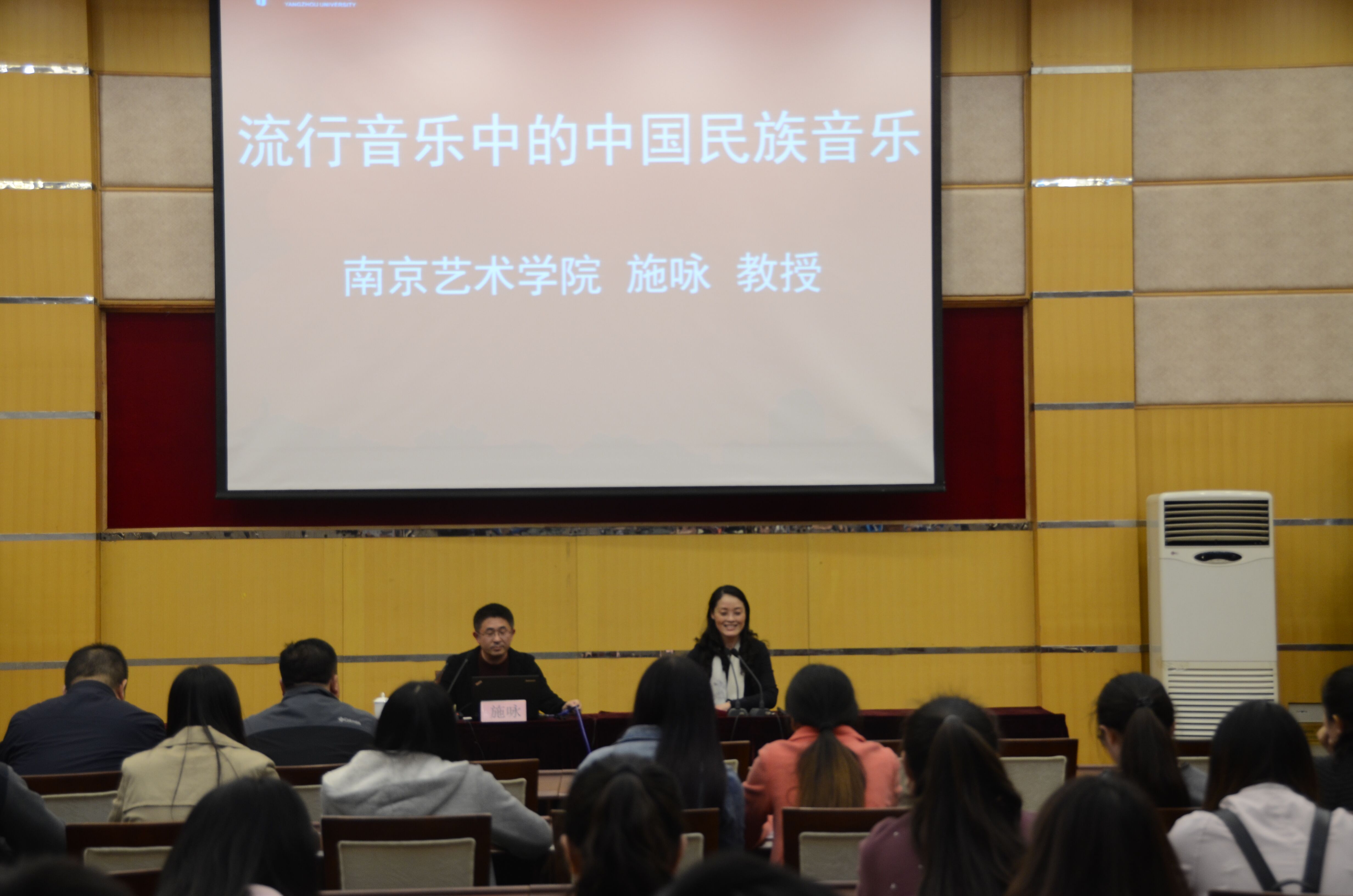 2016年4月20日下午两点,我院邀请南京艺术学院施咏教授在荷花池校区主楼多功能厅举行了《流行音乐中的中国民族音乐》的学术讲座。首先教学副院长邵萍副教授对施咏教授进行了简要的介绍,在随后的讲座中,施咏教授对我国流行音乐的发展历史作了系统的介绍,并按照我国的各地理区域民族音乐与流行音乐的结合以及对我国流行音乐未来的发展趋势等各个方面进行了生动详细的讲述。整个讲座中,施咏教授用深入浅出、通俗易懂的语言和大量的音乐资料带领大家走进了流行音乐与民族音乐有机结合的优美音乐世界中。参加学术讲座的音乐学院老师和学生一致认为通过此次学术讲座学习了更多深层次的流行音乐与民族音乐的知识,拓展了音乐文化视野,受益匪浅。