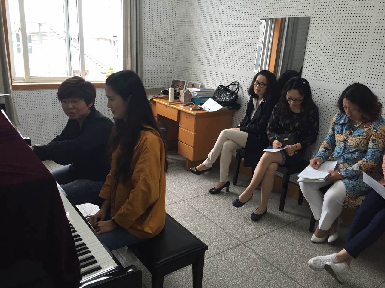 5月23日下午2点半,我院钢琴教研室教师在文汇路校区14号楼202琴房观摩了全昊坤老师的研究性教学钢琴演奏课《降B大调即兴曲》,课后召开了钢琴专业教学研讨会。每一位老师认真听讲,积极提出自己的见解,共同分享教学经验,整个研讨活动气氛活跃融洽,老师们都觉得收获颇丰。