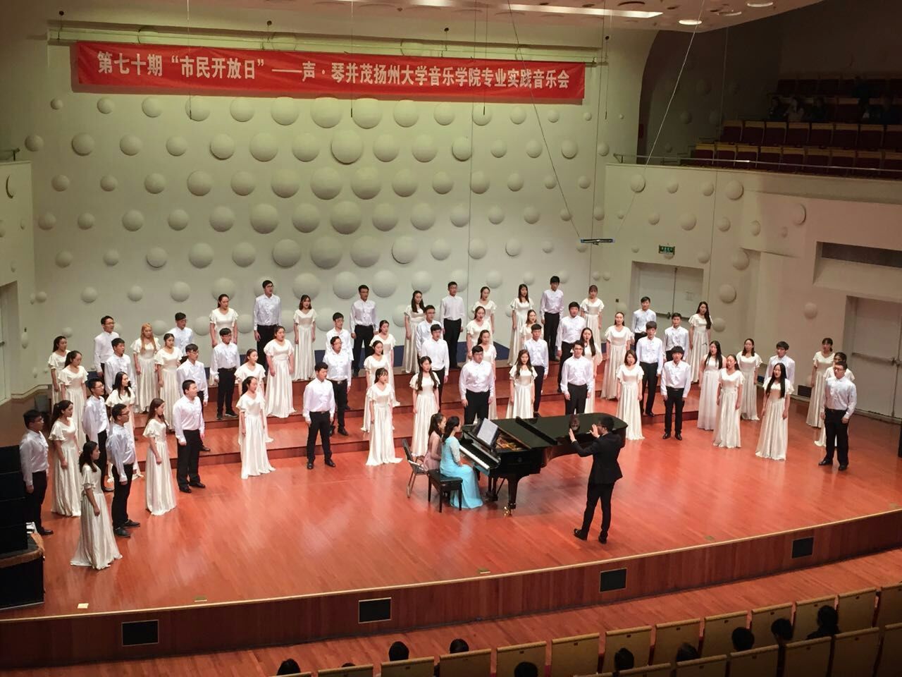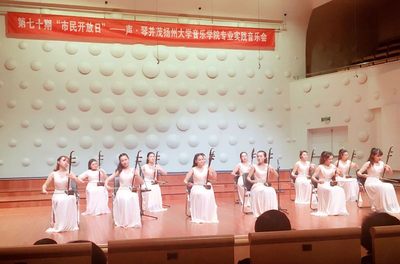 2016年10月30日,由扬州大学音乐学院和扬州市委宣传部、扬州市文广新局等单位共同主办的第七十期市民开放日暨《声·琴并茂》专业实践音乐会在扬州市音乐厅举行,扬州大学音乐学院党委书记李向阳、党委副书记李伟、副院长邵萍等观看了演出。