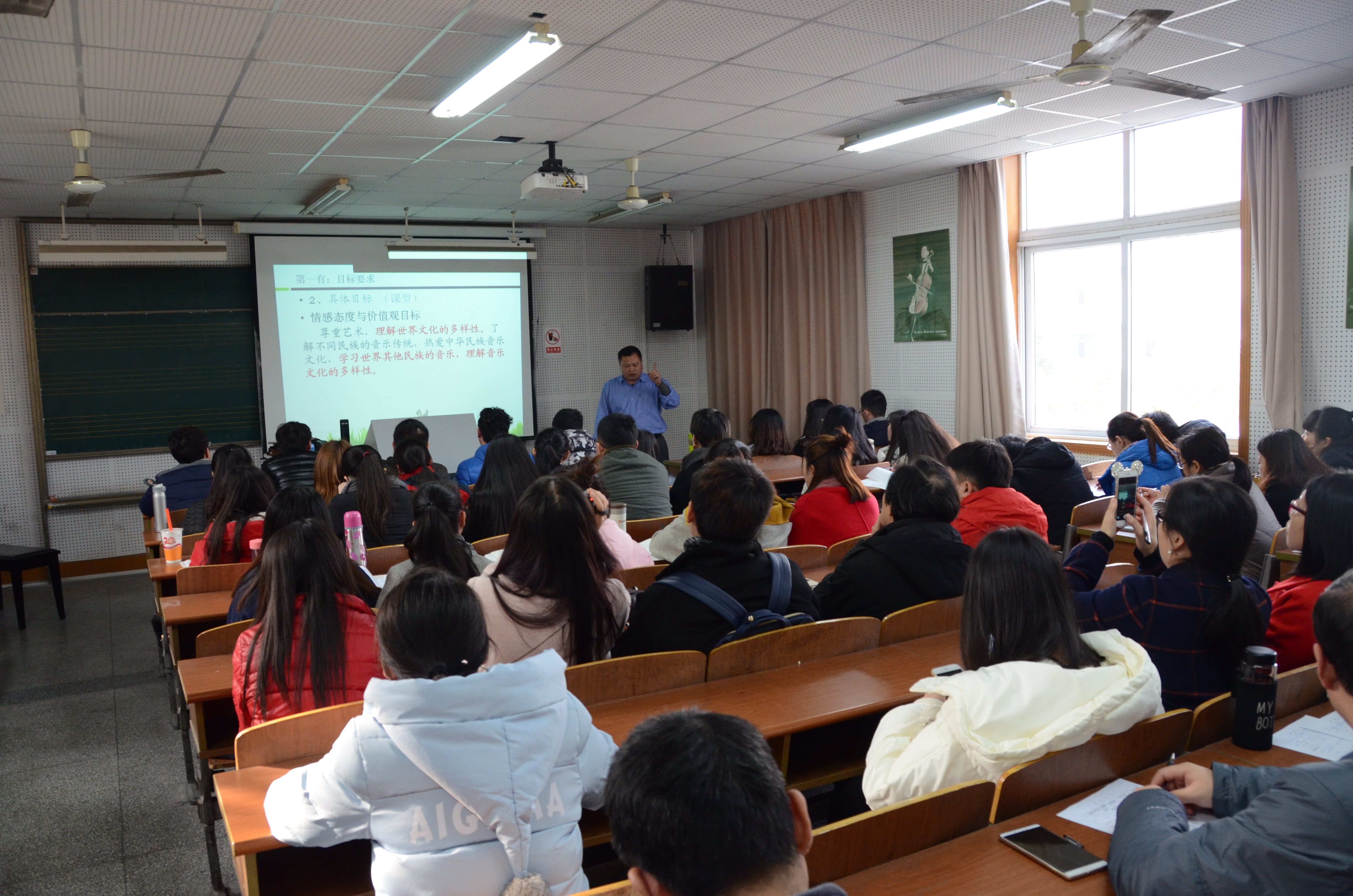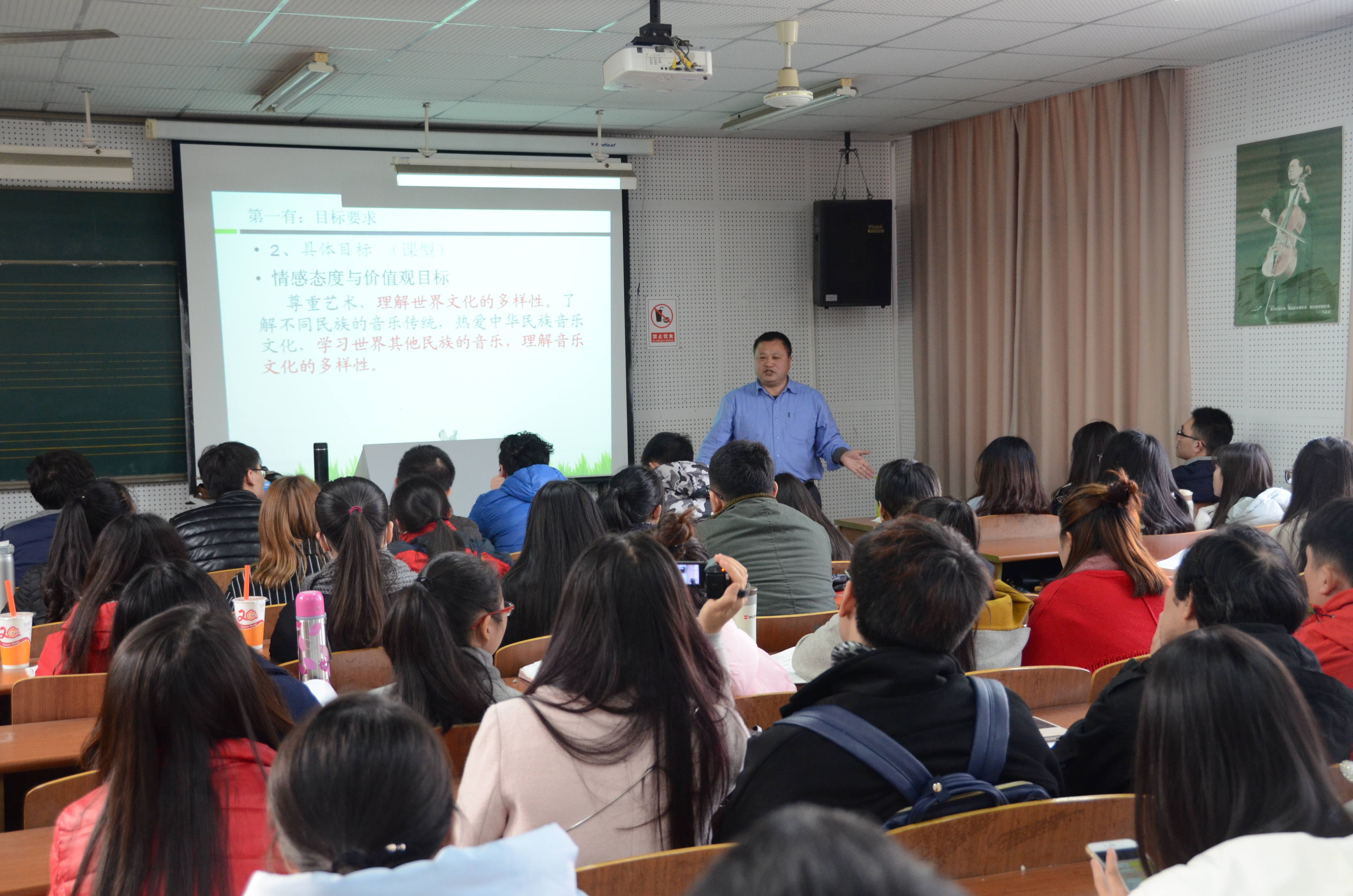 11月30日下午两点,我院教授杨殿斛老师在文汇路校区14号楼216教室举行《学校音乐教育导论与教材教法》观摩课活动。教学中,杨教授从教学最基本环节如何备课导入,深入浅出的讲解了备课所需的五大环节和七点要求。