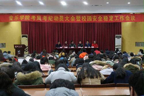 12月21日下午,我院在文汇路校区科技报告厅召开“音乐学院考风考纪动员大会暨校园安全稳定工作会议”,保卫处副处长丁旭、学院全体师生参加了本次会议。