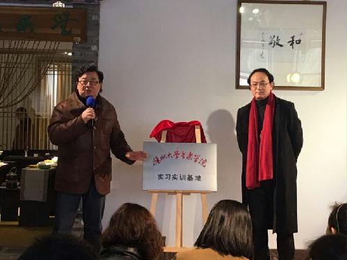 2016年12月31日下午,音乐学院院长张美林及副院长邵萍来到扬州和敬琴邑文化交流有限公司,为我院新增的实习实训基地举行揭牌仪式。
