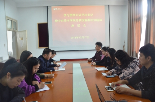 2018年10月17日,音乐学院召开学习贯彻习近平总书记给中央美术学院老教授重要回信精神座谈会,学院党委书记李向阳、音乐学专业主任、艺术实践教研室主任、器乐教研室主任、国家级科研项目负责人、班主任和辅导员等教师代表以及研究生会主席、学生会主席等学生代表参加了座谈会。