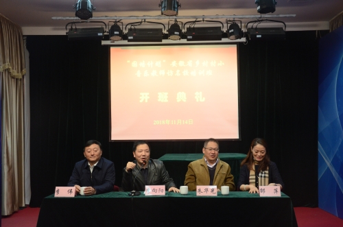 2018年11月14日上午,我院在扬州大学文汇路校区鸣乐厅举办“国培计划(2018)”安徽省村小教师访名校培训班开班典礼,扬州大学继续教育学院副院长朱华光、音乐学院党委书记李向阳、党委副书记李伟以及副院长邵萍出席开班典礼。