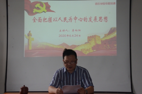 6月24日下午,音乐学院通过腾讯会议举办“全面把握以人民为中心的发展思想”专题党课,院党委书记李向阳主讲,全体学生党员参加了专题学习。