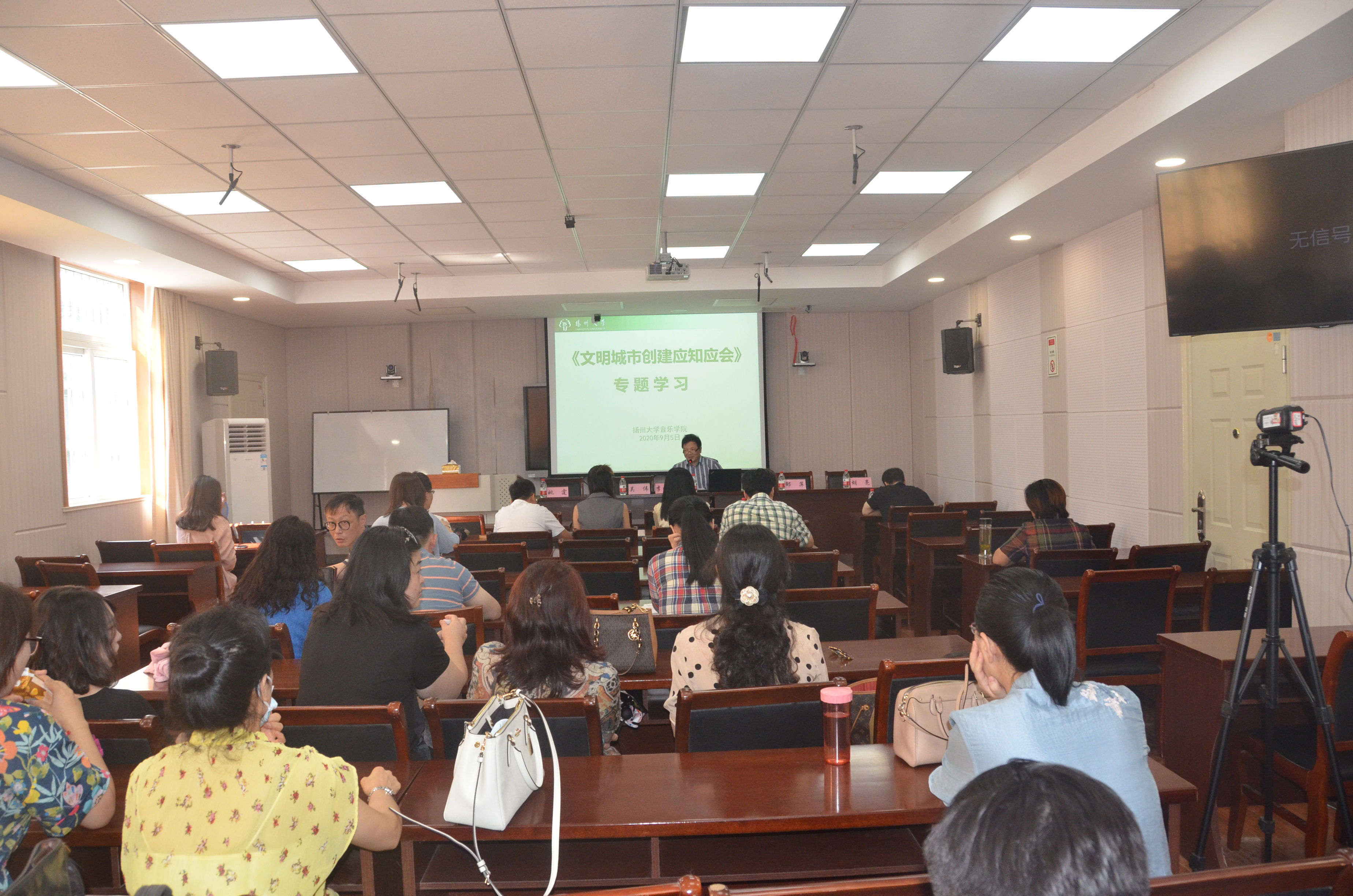 为进一步提高全院教师对创建文明城市的参与度,9月5日,音乐学院召开新学期教职工大会,院党委书记李向阳带领大家集中学习了《文明城市创建应知应会》。