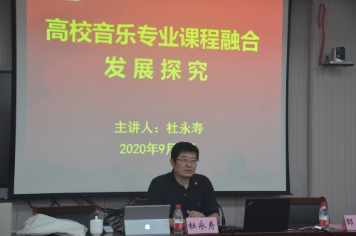 会议邀请了人民音乐出版社副总编辑、《中国音乐教育》《钢琴艺术》杂志主编杜永寿作“高校音乐专业课程融合发展探究”专题报告,杜老师讲解了音乐教育专业课程改革情况和部分高校人才培养方案,分析了音乐教育专业本科课程,指出课程设置应以精简、精准、实用为原则,注重将基础类课程与职业定位相结合,强调音乐教学应注重审美性和实践性相结合,不断提高对音乐课程价值的认识及对实现途径的探索。