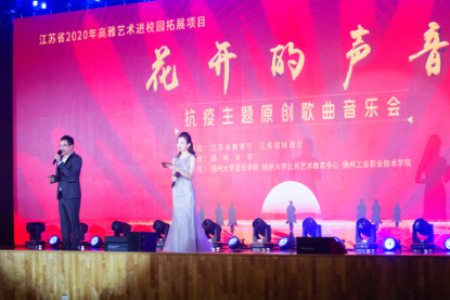 10月15日晚,由江苏省教育厅、财政厅主办,扬州大学所承办的高雅艺术进校园拓展项目——“花开的声音”抗疫主题原创歌曲音乐会在扬州工业职业技术学院顺利进行。