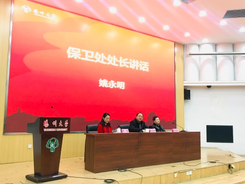 校园安全稳定会议由院长邵萍主持,院党委书记李向阳总结并部署了校园安全稳定工作,院领导与各部门、班级签订了安全稳定责任书,保卫处处长姚永明通过案例分析,提醒广大师生要提高防骗能力,增强消防安全和交通安全意识,努力打造平安和谐的校园环境。