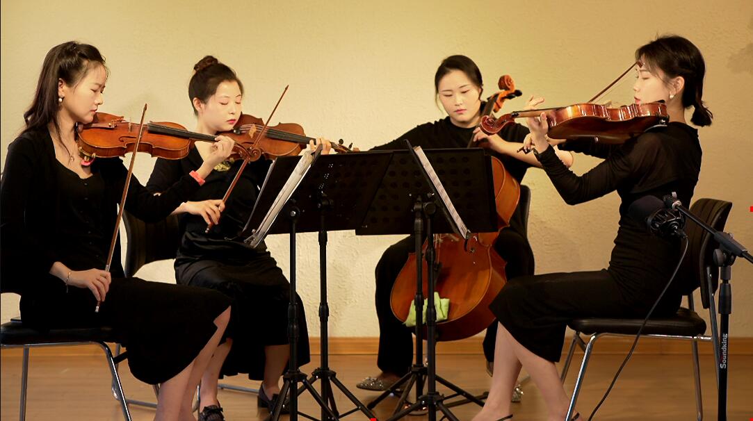 5月3日下午,音乐学院举行了“迎校庆·产业教授进校园”线上音乐会活动,扬州市童盟音乐艺术有限公司总经理仝童女士进行了“弦乐四重奏演奏中的‘合作意识’培养”的学术报告。音乐学院院长邵萍教授首先对仝童女士的情况进行了详细的介绍,并对优秀校友作为产业教授回校进行线上音乐会活动表示欢迎,希望下一步继续加强专业硕士研究生合作培养。报告由音乐学院副院长胡亮教授主持,部分学院老师和2020、2021级全体研究生参加了本次活动。本次活动共演出了中外室内乐名曲9首,乐曲风格多样,这是音乐学院近期举办的“迎校庆”系列活动之一,活动以“线上音乐会”的方式举办,在腾讯会议、抖音、微信视频号三个在线平台实时播出。