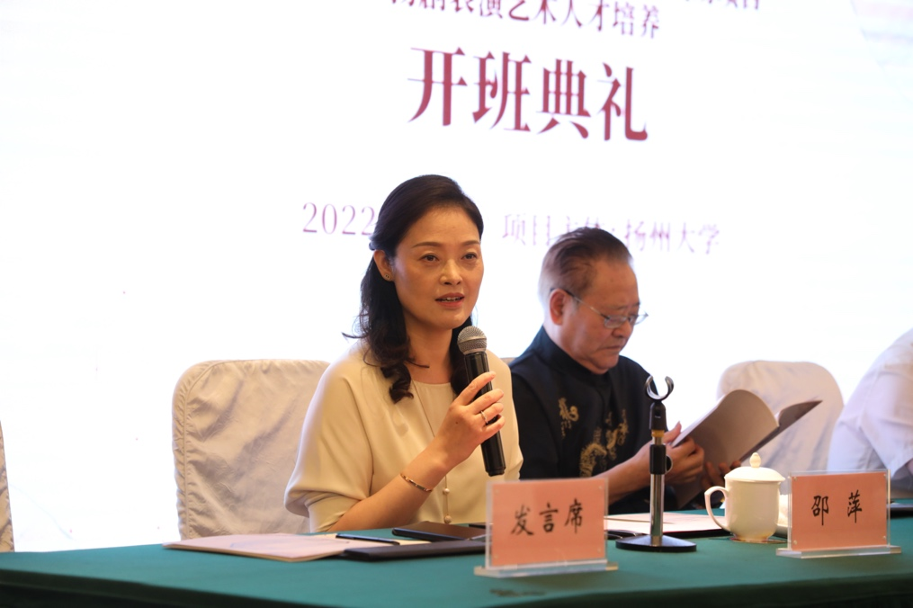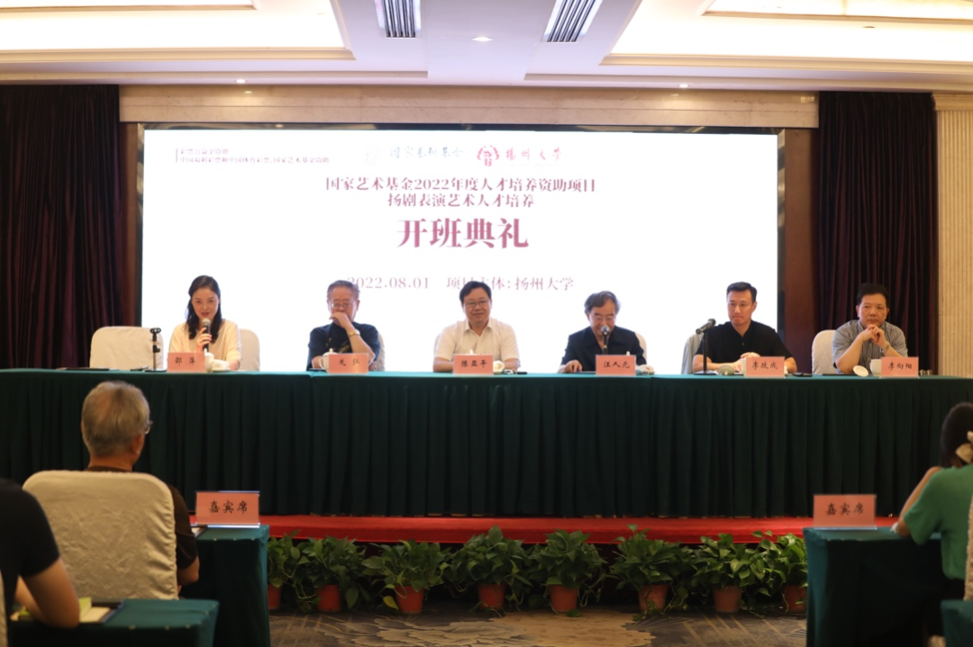2022年8月1日,国家艺术基金2022年度艺术人才培养资助项目《扬剧表演艺术人才培养》开班仪式在扬州花园国际大酒店召开。扬州大学党委常委、副校长陈亚平,扬州文化广电和旅游局副局长、扬州市扬剧研究所所长李政成,江苏省戏剧协会名誉会长、授课专家代表汪人元,国家一级作曲、扬州市音乐家协会名誉主席戈弘,国家一级导演邱龙泉,著名扬剧表演艺术家葛瑞莲,扬州大学音乐学院党委书记李向阳,扬州大学音乐学院院长邵萍,扬州大学音乐学院副教授袁野,扬州大学音乐学院副院长姚霆,扬州大学特聘教授魏琳琳以及新华日报(扬州办事处)、现代快报、扬州日报、扬州晚报、扬州大学电视台的记者等出席开班仪式。