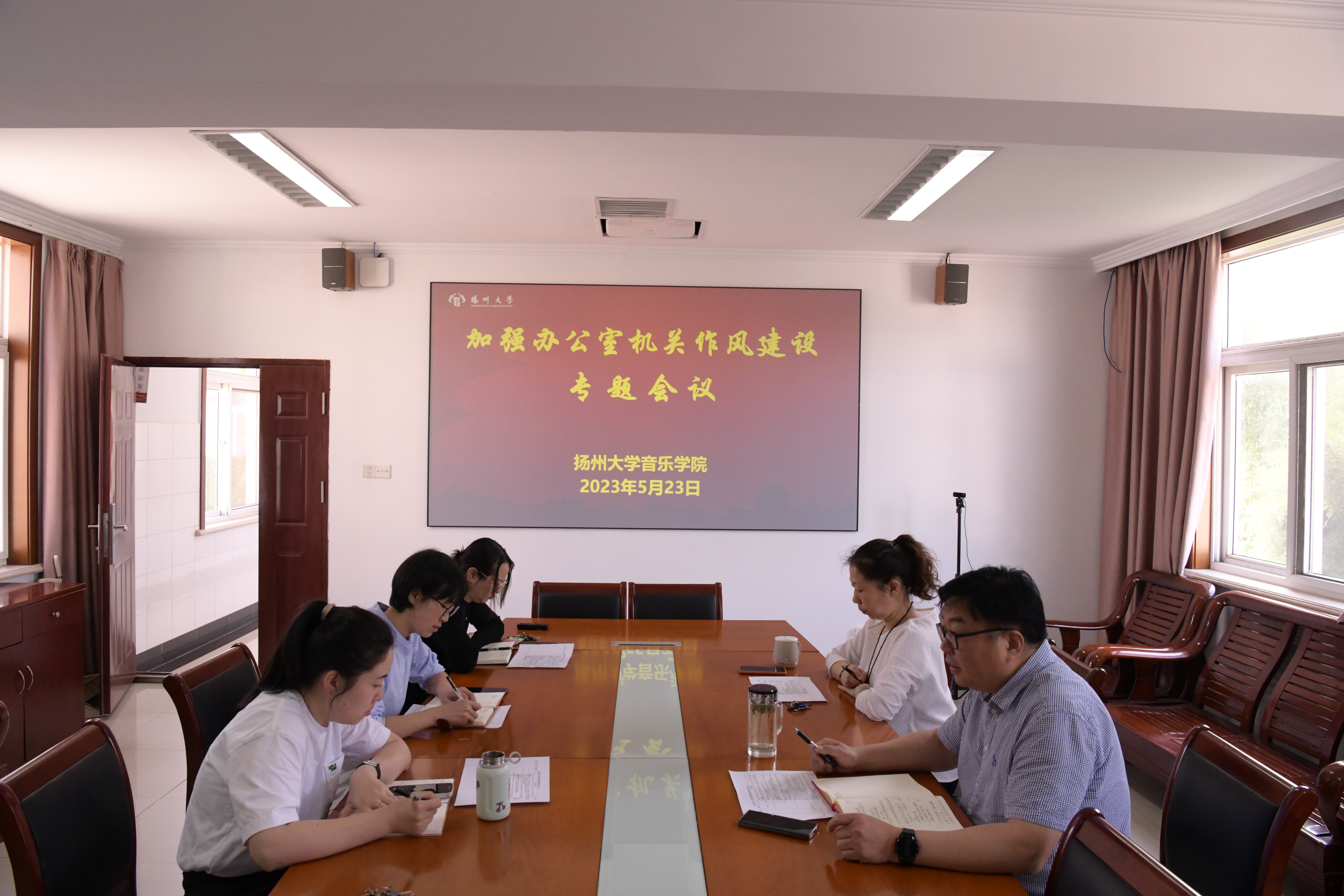 5月23日,音乐学院召开加强办公室机关作风建设专题会议,学院综合办公室、公共艺术教育中心等行政机关全体人员参加了会议。