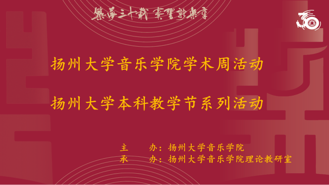 2023年11月23日,为了庆祝扬州大学音乐学院办学三十周年,理论教研室承办了“筑梦三十载,奏响新乐章”学术周活动暨扬州大学本科教学系列活动拉开帷幕。