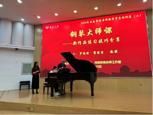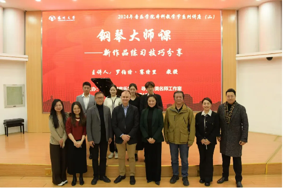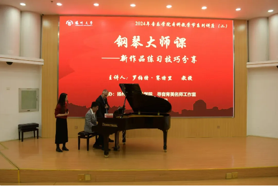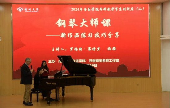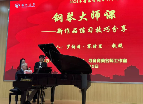 为了培育和提升学生的专业素养,11月19日下午扬州大学音乐学院在扬州大学荷花池校区逸夫馆报告厅举办2024年音乐学院本科教学节系列讲座(二)“钢琴大师课——新作品练习技巧分享” 特别邀请美国著名钢琴家罗伯特·赛特里教授主讲,音乐学院院长邵萍老师、副院长姚霆老师和钢琴教研室主任付龙老师以及钢琴教研室全体老师,大一、大二全体学生以及全院钢琴专业学生参加本次讲座。