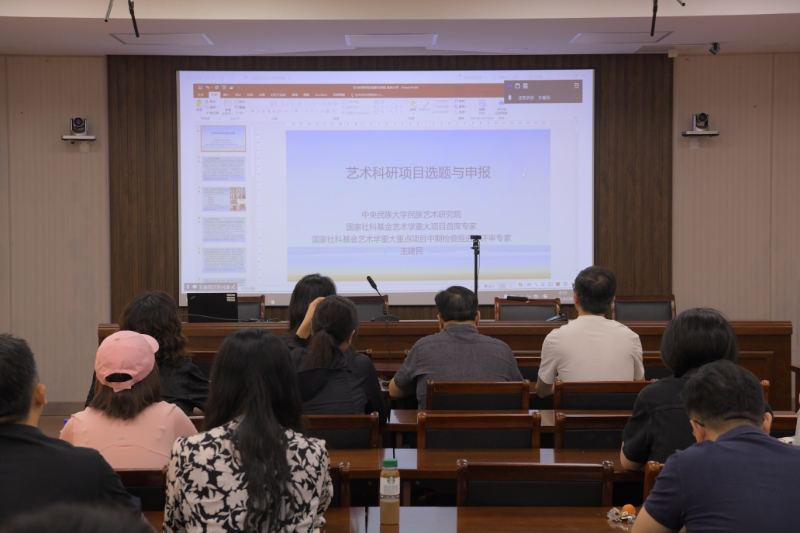 2025年6月26日上午,学院邀请中央民族大学艺术研究院常务副院长王建民教授,开展了线上科研工作例会,为我院教师课题申报进行指导培训,院长邵萍主持会议,学院全体领导班子成员及中青年教师参加会议。