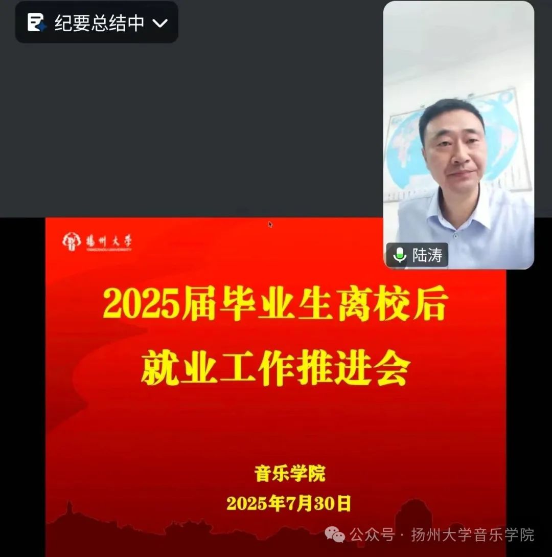 7月30日,音乐学院召开了2025届毕业生离校后就业工作推进会。院党委书记陆涛出席会议并讲话。院长邵萍主持会议。
